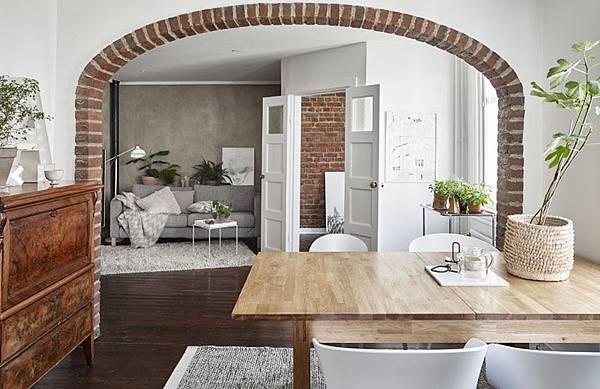 半圓形的拱門拱窗是源自於歐洲自古以來的傳統,室內空間不再規矩的方方正正,反而多了更多優美柔和線條。除了天花板的拱門之外,隔間的圓拱簍空小窗順勢讓空間延展不再封閉,也多了幾分浪漫氣息。